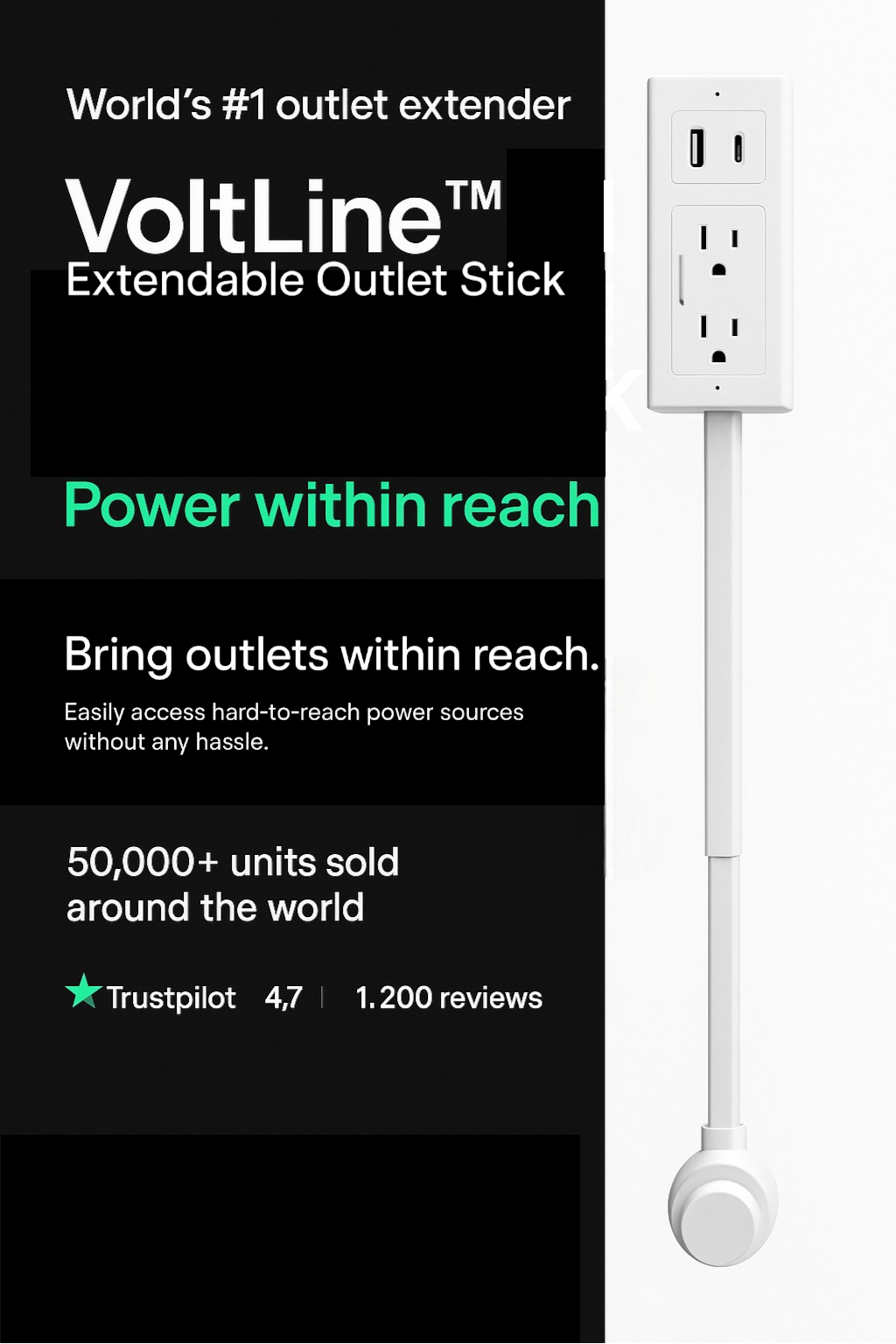 VoltLine™ solves the everyday struggle of hard-to-reach outlets by extending power up to 34 inches — right where you need it.